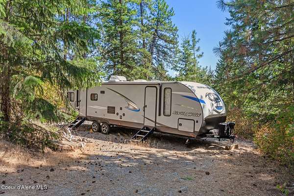 From I-90 head North on N Pleasant View Rd, left onto Hwy 53, right on N Hauser Lake Rd, left on W Holliday Way, and continue up the private road at the end of the cul-de-sac to the property