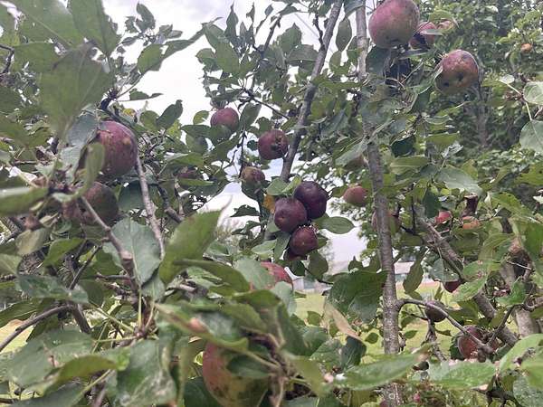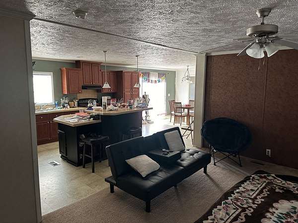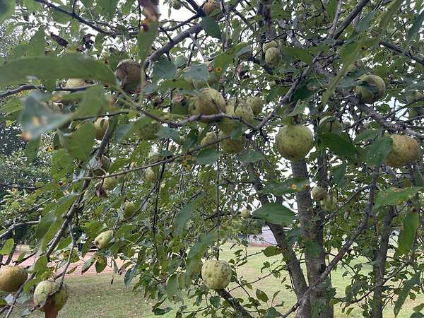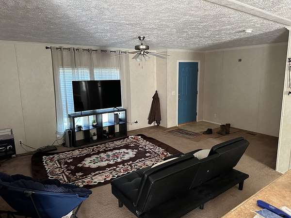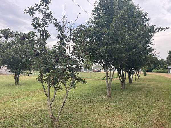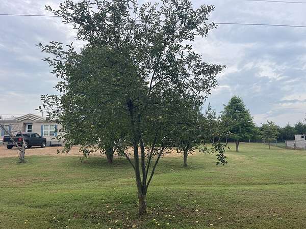 The property includes a three-bedroom, two-bath doublewide mobile home and is set in a private, secluded location. Numerous fruit trees across the property add charm and seasonal variety, with many currently bearing fruit.