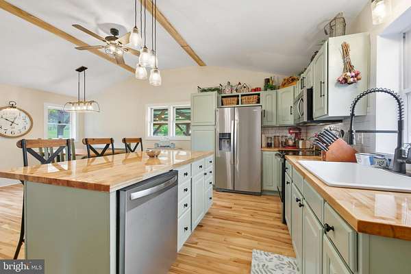 - Attic, Ceiling Fan(s), Entry Level Bedroom, Family Room Off Kitchen, Formal/Separate Dining Room, Island Kitchen, Open Floor Plan, Soaking Tub Bathroom, Studio, Tub Shower Bathroom, Wood Floors, Wood Stove