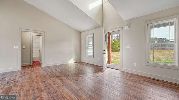 If you've been waiting for something different, this is it. Freshly completed and move-in ready, the Aleigha Jade floor plan, thoughtfully designed and built by Jade Construction Company offers a refined take on modern country living, where elevated design meets quiet sophistication. Set on more than three acres, this new construction home delivers over 1,500 square feet of thoughtfully curated living space designed for comfort, style, and effortless everyday living. The arrival experience immediately sets the tone, with a staggered two-car garage featuring upgraded carriage-style doors, modern lantern-style exterior lighting, and architectural lines that create striking curb appeal. A covered front porch welcomes you home, while the rear composite deck provides a seamless extension of the living space, ideal for entertaining or unwinding in a peaceful setting. Inside, the open-concept layout is filled with natural light and defined by vaulted ceilings and luxury vinyl plank flooring throughout, creating a sense of volume and continuity. The kitchen anchors the home with a polished, designer feel, showcasing alabaster custom cabinetry with soft-close features, quartz countertops, stainless steel appliances, and matte-black fixtures that add depth and contrast to the clean, modern palette. A custom entry coat rack with built-in cubbies blends form and function with a tailored finish. The primary suite is a true retreat, offering generous proportions, an oversized walk-in closet, and a spa-inspired ensuite with on-trend finishes and warm butcher-block shelving that introduces an organic, elevated touch. Behind the scenes, details such as curated lighting and a conditioned crawl space reflect a commitment to long-term comfort, efficiency, and quality craftsmanship.