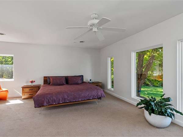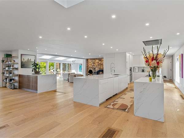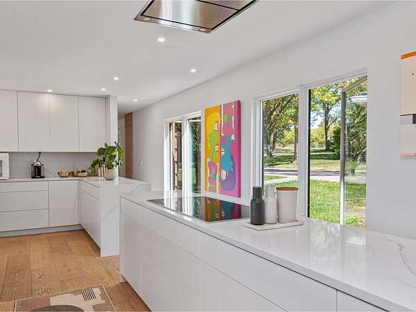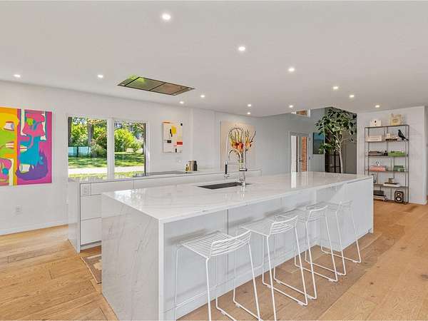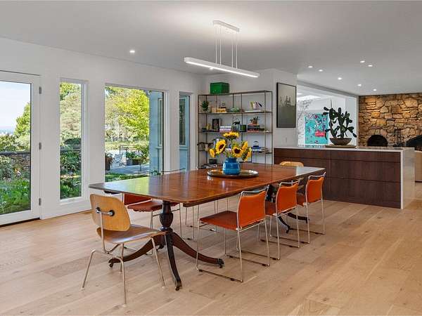Set on a rare 3.62-acre property that gently rolls toward the lake, this 5-bedroom residence offers over 4,500 sq. ft. and pairs Vermont's natural beauty with a sleek, modern aesthetic. Enjoy year-round sunsets over Lake Champlain and the Adirondacks, minutes from UVM Medical Center, the airport, downtown Burlington, and the bike path. The majority of the first floor was reimagined in 2020, opening the home to an airy, light-filled layout designed to take in westerly views. Walls of glass, skylights, and wide-plank flooring create a seamless flow between living, dining, and entertaining spaces. With generous wall space throughout, the home is an art lover's dream. The chef's kitchen features Miele appliances, striking white quartzite counters, and a unique design with two parallel islands that maximize both function and entertaining space. A den with Rumford fireplace adds warmth, while a first-floor office provides a quiet retreat. Two primary suites, one on each floor, offer spa-like baths with tiled showers, double vanities, and custom walk-in closets. Upstairs, an additional three bedrooms share a full guest bath. Designed for both lifestyle and leisure, the home includes a heated pool, fenced backyard, lighted tennis court, and an indoor racquetball court. A large mudroom, private half bath, and attached 3-car garage add everyday ease. This is where Hollywood Hills style meets Vermont living. Expansive, modern, and perfectly sited for sunset views over Lake Champlain.