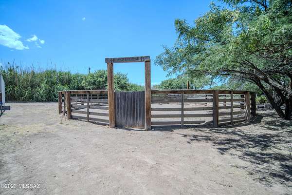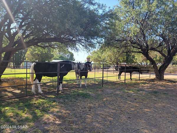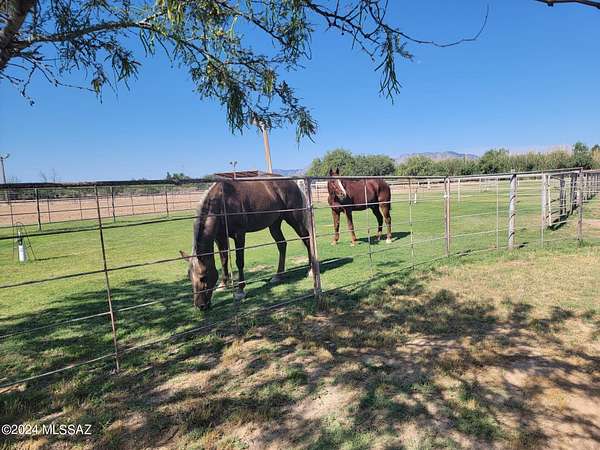 ATTENTION! A substancial price reduction will be in effect for a short time, so Be quick to view Your Desert Oasis is here in St David, AZ. Nestled in the San Pedro River Valley your new horse property has lots of room inside the completely fenced 7.4 acres w/ a private pond, expansive green pastures & the perfect set up for equestrian living your property is a true find. Nature abounds here, w/ migrating birds & ducks frequently visiting your pond, offering endless opportunities for bird watching & enjoying the outdoors. Your new horse property is packed w/ features that make it truly special. An arena & round pen are well lit for night-time use. A tall 40X18 foot hay barn is close by. There are paddocks, equipment storage, multiple stalls & a double tack room. There is a bunk house w/ 1/2 bath & laundry facilities perfect for a care-taker or other practical purposes. Adjacent to the barn the bunk-house connects seamlessly to the tack room & feed storage area. Solar panels on the roof of the barn provide enough energy to power the house, barn & bunk-house. Water is abundant w/ two high producing wells. The primary well pumps approx. 30 gallons per minute into a 1,500 gallon pressurized storage tank for irrigation & domestic use. Property also features 3 RV hook-ups, ideal for guests or those traveling w/ horse trailers & living quarters (LQ). Step inside this gorgeous & well maintained 4 bedroom/3 ba. home filled w/ natural light & designed for comfort & entertaining. The kitchen is the heart of the home offering granite counter tops, custom cabinets, a large pantry & an RO system for water purification. Enjoy ample counterspace & a breakfast bar making meal prep& serving a breeze. Picture hosting holiday dinners in the formal dining room, where custom cabinetry provides plenty of storage & a additional sink for convenience. Afterward, relax by the pellet insert fireplace which creates a cozy & inviting atmosphere. The master suite is your private retreat featuring a propane fireplace, double sinks, a jetted tub & a spacious step-in shower. Step outside to your 12X70 covered porch w/ a Kiva fireplace perfect for taking in the tranquility of the pine trees along the eastern side of the home. There is also a second master w/ a private bath, while the third & fourth bedrooms share a bath. This horse property is a dream come true for equestrian enthusiasts or anyone seeking a peaceful & functional retreat. Mild winters, abundant water w/ convenient amenities & trails make this an exceptional opportunity to live your ideal lifestyle. Come enjoy the ambiance!!