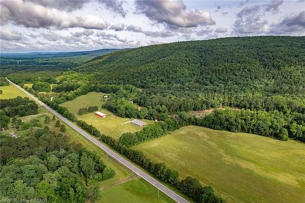 Nestled in the heart of the scenic Ouachita Mountains this beautiful property boast frontage on a state highway and sits directly across from the Arkansas Muddy Creek Wildlife Management Area making it an outdoor enthusiast's dream and a nature lover's paradise. The stately brick home sits on approximately 5 acres while the remaining acreage is pristine and untouched. Built in 1990, spans over 3,000 square feet and features 4 spacious bedrooms, 3 full bathrooms, walk in closets, a formal entryway, formal dining, eat in kitchen, generous living spaces, and the 2-car garage includes extra space for storage, projects, and equipment. The home is constructed with durable 2x6 framing, is well-insulated and designed for comfort and energy efficiency. Four dormer windows bring in natural light to the upper level, while wide, full-length covered porches in the front and back offer the perfect spot to relax and take in views of the creek and surrounding mountains. The kitchen includes a bay window with a stunning creek view, and off the laundry room is a bonus space that could be used for a walk-in pantry or whatever your heart desires. A high-efficiency wood stove provides cozy warmth, with abundant firewood available on the property. The beautiful red barn offers a mix of concrete and dirt flooring, with two large equipment doors. Additional structures include a woodshed for firewood or hay storage and a tool shed that could double as a chicken coop or garden shed. Talk about a haven for hunters and wildlife watchers alike-with frequent sightings of deer, black bears, wild turkeys, raccoons, and more. Also. fishing in the creek is excellent!! Whether you're seeking a private retreat, homestead, hunting lodge, or sustainable farm, this one-of-a-kind property offers endless potential and natural wonder. New flooring upstairs and downstairs as well as the kitchen!