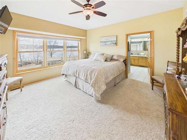 The main home, built in 2006, offers stunning west-facing views and generous living space, including 3 bedrooms and 3 bathrooms. Enjoy the lakeside setting from the expansive patio and deck overlooking the water.