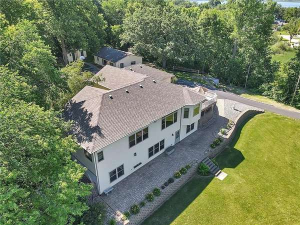 This rare, one-of-a-kind property features two homes on nearly 5 acres, with approximately 480 feet of level, drive-up accessible lakeshore.