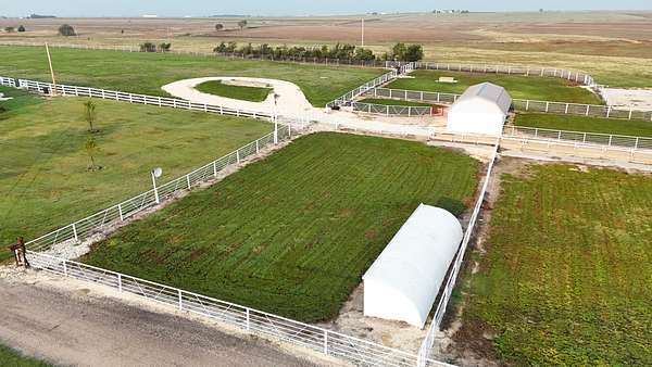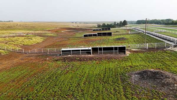 The property was home to the Schumacher's registered Charolais, Red Angus and commercial herds. The facility features multiple outbuildings, numerous bunk lines, a processing facility with easy flow alleys and pens for sorting and loading cattle. The intentional corral layout serves as easy fence line weaning transitioning to an on-sight grow yard for bull and replacement heifer development along with backgrounding feeders. A deep water well supplies a great water source to the tanks placed throughout the property.