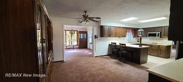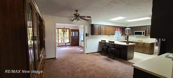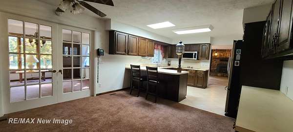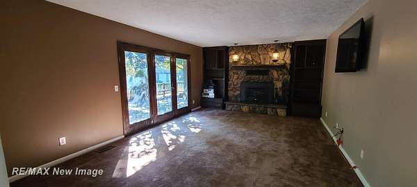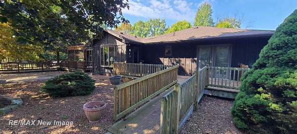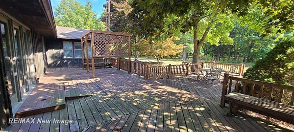Est $2,196/moSitting off the road on 4.6 wooded acres is where you will find this 3-4 bedroom, 2 bath ranch style home near Chesaning! This home features a family room with fireplace, living room and additional room in the basement to finish off for additional living space/rec room. It also has potential for the 4th bedroom/office if needed in the basement. Oversized kitchen with 4 person snack bar area opens up to an additional dining/sitting area overlooking the wooded backyard. 2 outbuildings for storage/work areas. Central Air. Paved, tree-lined driveway for additional shade and curb appeal. One-of-a-kind deck that extends the full length of the house...perfect for entertaining everyone!! One Year Home Warranty Included!!