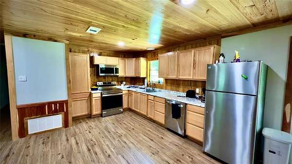 Looking for the perfect spot to spread out and enjoy some country living? Check out this 24.6-acre property just 2 miles west of Canfield, Arkansas on Hwy. 360. The home is move-in ready with 1,564 square feet, 3 bedrooms, and 2 bathrooms. It's been recently remodelled and has an open living and kitchen area that's perfect for hanging out with family or friends. Relax on the covered back porch while you watch nature stroll through the mature timber.