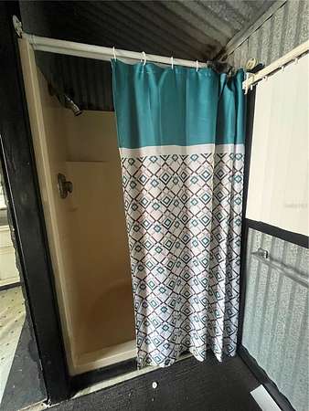 - 12x24 metal roof structure (aluminum roof) featuring 1 bedroom / 1 bath with shower, laundry area, and covered patio