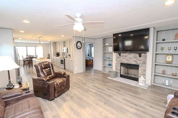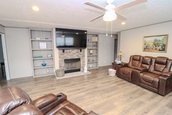 Check out this like new 3 bedroom 2 bathroom home on 15.10 acres! Nice manufactured home with tons of modern amenities! Come home to the nice wood burning fireplace in the living room! Take a peak around the kitchen and find tons of cabinetry and a big kitchen island! Check out the nice primary bedroom with a full primary bathroom featuring a huge soaking tub, separate shower and walk-in closet! Vinyl flooring, updated lighting, walk-in closets, storage, and more! Don't forget about the 30x40 detached shop with electric and concrete flooring with an additional 16x40 lean-to! If you're looking for the perfect place to start a farm, added space, or maybe just the country feel, you have found it! Plenty of space for your livestock or room to go hunting! Property also qualifies for Greenbelt tax savings! This is home is like new and is ready for a new owner! Don't wait, call today!