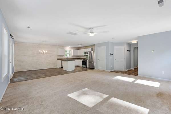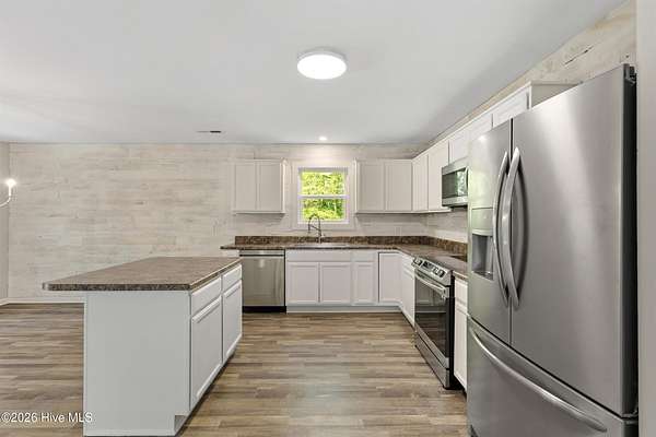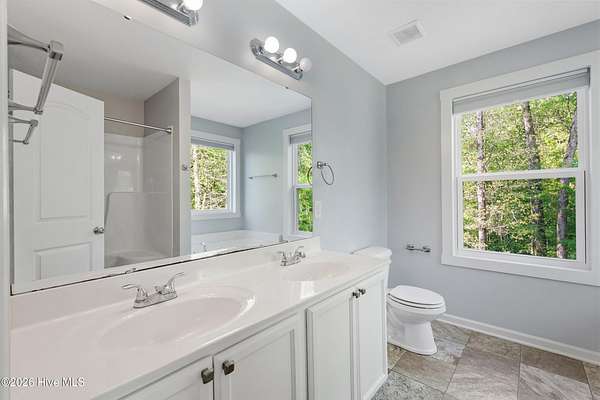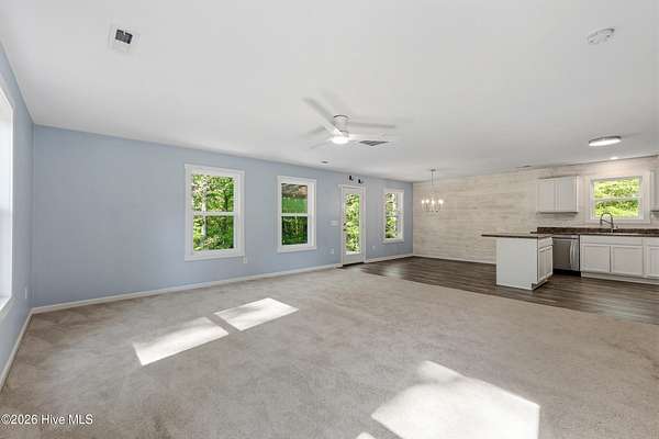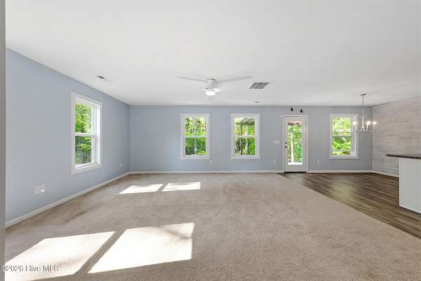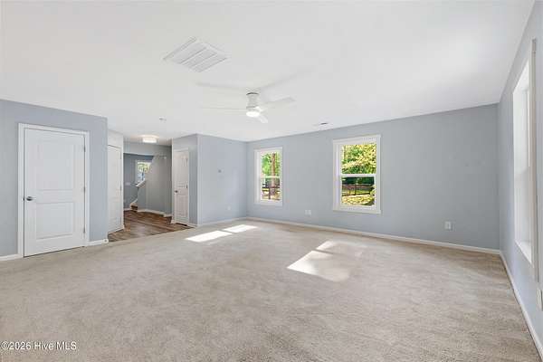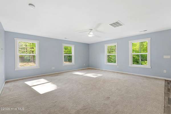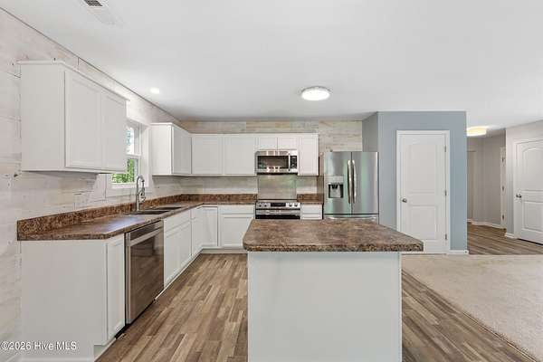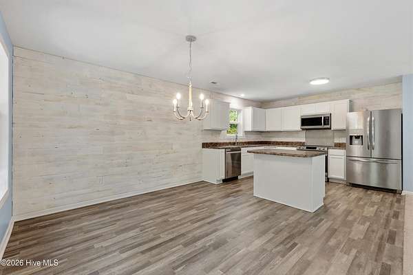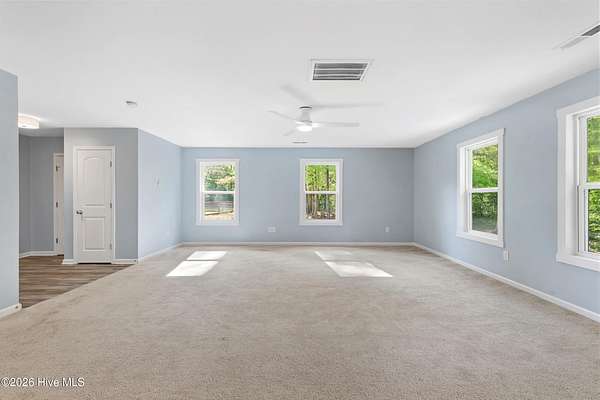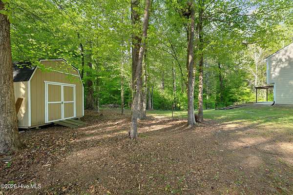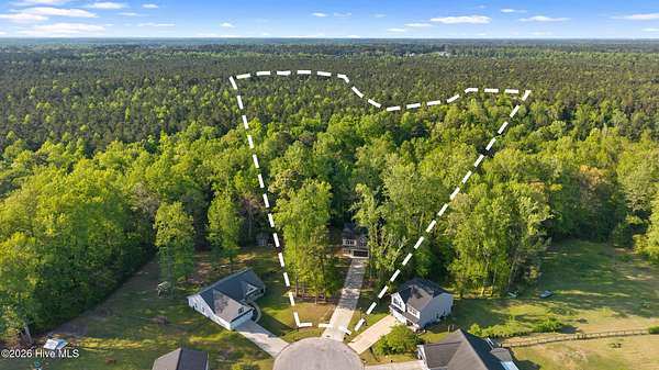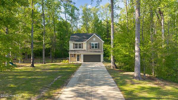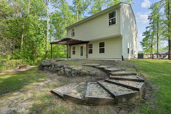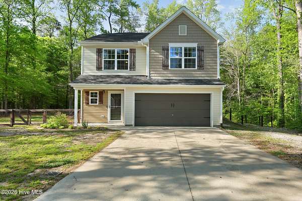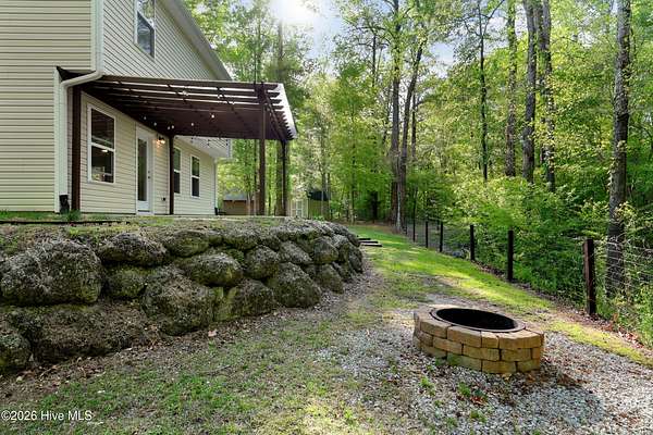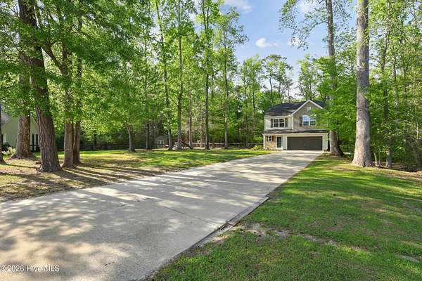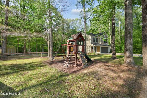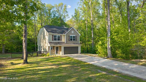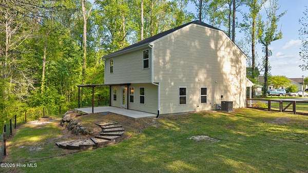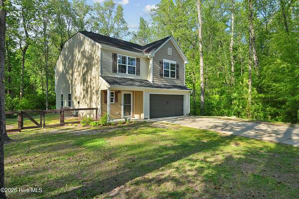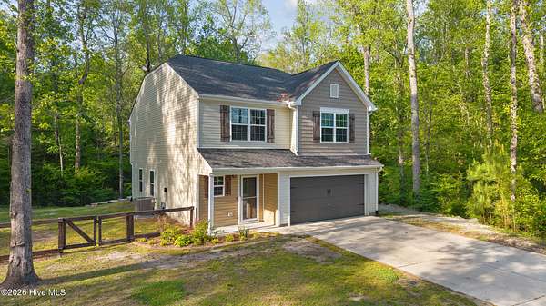 Hunting for the perfect home near Camp Lejeune? Don't miss your shot at over 2 acres backing up to Stones Creek Game Lands. This is the kind of setup that's getting harder to find this close to base. Wooded acreage behind the home gives you space to spread out, breathe a little, and actually enjoy your backyard instead of staring into someone else's. As you pull in, the driveway has plenty of room for your RV, boat, side-by-side, motorcycle, and still space left over for daily drivers. Inside, you're welcomed by a foyer that opens into the main living area with a layout that just makes sense. The kitchen features freshly painted cabinets, shiplap detail, and a pantry just off to the side. There's also a half bath on the main level with matching shiplap accents that tie everything together. Upstairs, all three bedrooms are tucked away along with a loft that can be whatever you need it to be, second living space, playroom, or a spot to get away for a bit. The primary suite includes a walk-in closet, soaking tub, and separate walk-in shower, while the guest bath features a tub/shower combo. The washer and dryer are also upstairs and will convey with the home, right where you want them. Out back is where this one really separates itself. The pergola-covered patio looks out over the wooded lot, with a fire pit area just beyond that's made for evenings outside. There's also a storage shed for your gear, and a playset in the front yard that will convey. If you've been looking for space, privacy, and convenience to Camp Lejeune, Stone Bay, and MCAS New River this is a rare find.