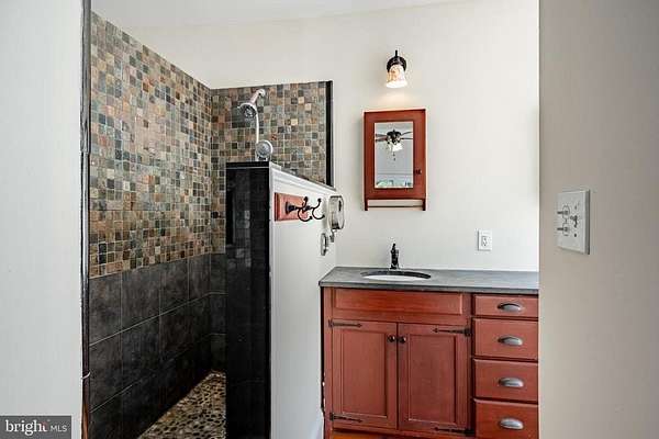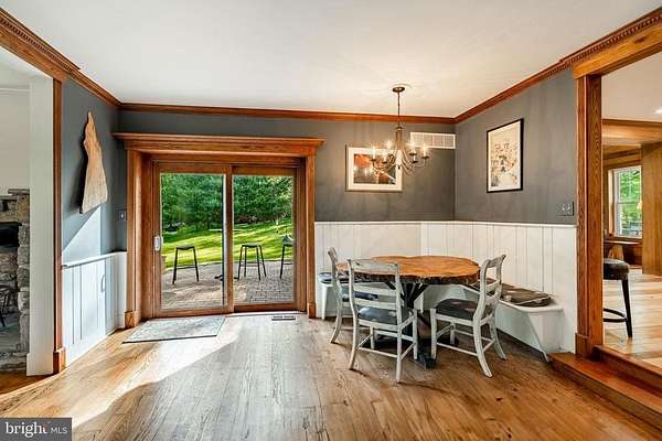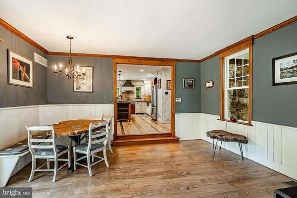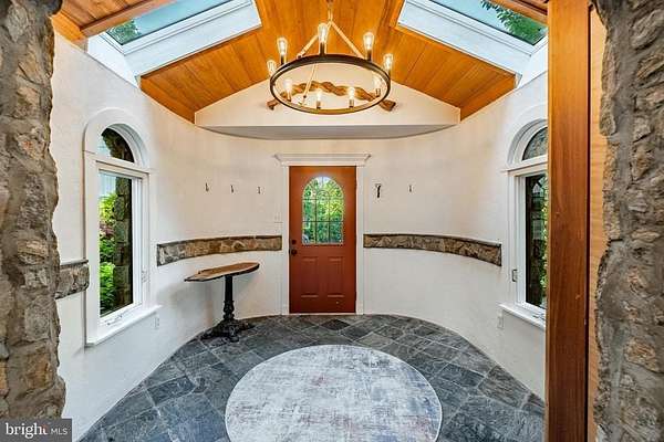 This is a fabulous c.1886 house where the creative owner changed and altered spaces to create the unique home you see today! This is not your average cookie-cutter house plus the property offers three additional living spaces! One living space is above the garage, and two are in the Barn. The extent of the home's creative character is immediately felt with your first step into the Foyer. The room's vaulted ceiling is sheathed in reclaimed natural mahogany and the oval shaped room features arched windows and a slate floor with beveled edges. Stone replaces a traditional chair rail and a stone arched doorway welcomes you into the adjoining Great Room and Kitchen. Here, the floors draw your attention as they are perfectly crafted with a rich combination of ash, maple, walnut and mahogany wood. The vaulted ceiling in the Great Room is beautifully sheathed in reclaimed mahogany and the light from three skylights brightens the room. The east end of the Great Room features an incredible dry laid stacked stone wall with an arched window at its center. All of the handsome Kitchen cabinets where made on site and the center island's countertop is made from a slab of black walnut with a live edge. The kitchen counters are beautiful Italian soapstone. Thanks to several interconnecting rooms, this home is perfect for someone who loves to entertain as there is plenty of space and a wonderful flow. The Dining Room features exquisite mahogany dental crown molding and special woodworking around all of the doors. The next room is the Den which houses the staircase and a cozy gas fireplace. Finishing the main level is the Bar Room which features a wall of custom cabinets surrounding a bar with a wine cooler below. This dramatic space also features four arched windows set in a stone wall. The Powder Room is located here. A door leads to a large mahogany deck with a hot tub - a wonderful location for intimate dinner parties. Upstairs is a wonderful Primary Suite with a fabulous bathroom and walk-in closet. On this level are two additional bedrooms and an updated Hall Bathroom. The upper level hall is also home to the Washer and Dryer. For the chef in the house, there is a wonderful stone and brick pizza oven off the back terrace! Adjacent to the home is a Three Car Garage. One Garage bay has been converted into a home Gym which allows you to workout daily in your own personal gym with a state of the art infrared Sauna. Over the three car Garage is a spacious residential apartment with kitchen/great room, bedroom, and full bathroom. In what was once the Barn, then the workshop for Brandywine Cabinetry, you will now find two apartments. There are two lovely ponds on the property, one of which is stocked with bass and coy while the other has a soothing waterfall. For the young at heart, there is a great tree house. This fine property is truly the work of a creative master craftsman and represents the highest quality workmanship. Additionally, a buyer will enjoy views of the nearby Brandywine Creek. A new owner will also be proud of the fact that parts of the property were featured in a Wyeth painting. All of the home's mechanical systems have been thoroughly updated with high-end equipment. Located in the highly sought after Unionville-Chadds Ford School District, this wonderful property also enjoys very low taxes!