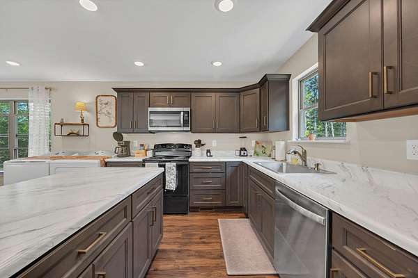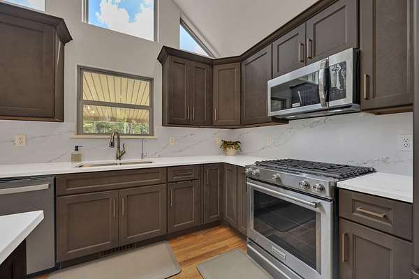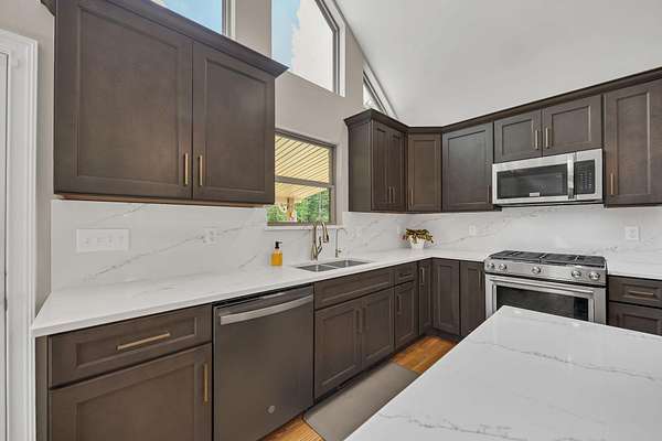 - Built-In Gas Oven, Built-In Gas Range, Dishwasher, Microwave, Stainless Steel Appliance(s)