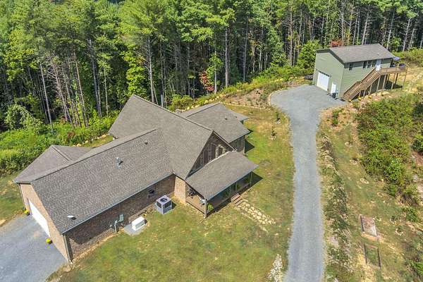 Discover your own private sanctuary on 15 wooded acres, a main home and separate 2 bed, 1 bath mother-in-law home or vacation rental built in 2023 just moments from the Hiwassee River—perfect for tubing, fly fishing, and recreational activities that draw visitors from across the region. Tucked away in peace and quiet, yet surrounded by natural beauty, this property offers both a luxurious lifestyle and practical features designed for comfort and self-sufficiency. The main residence showcases timeless real brick and stone veneer construction, expansive windows that frame wooded evergreen views, and white oak hardwood floors throughout. The open-concept floorplan is anchored by a light-filled living room and a private master suite complete with a greenhouse, large soaking tub, custom tile shower, and spa-like retreat atmosphere. A Generac generator, UV light system and water softener add peace of mind, while the fully encapsulated crawlspace ensures efficiency and durability. The primary residence's kitchen features stainless steel appliances, Quartz countertops with a gas range, seamlessly flowing into the dining and living areas—ideal for entertaining. Outside, enjoy evenings on the secluded back porch, around the fire pit or relax in the quiet of your own forested haven. A separate in-law building or vacation rental offers 2 bedrooms, 1 bath with Quartz countertops, Starlink and a fully insulated RV garage with hookups below, a perfect opportunity for guests, extended family, or potential short term vacation rental income. A large pump house, with water supply pumping 25 gallons per minute, offers further potential to be built out into additional living quarters. The gravel driveway has been recently refreshed as well, and utilities remain remarkably low thanks to thoughtful systems already in place. This property is more than a home—it's a retreat environment, blending tranquility, luxury, and tremendous investor opportunity. Schedule your private showing today.