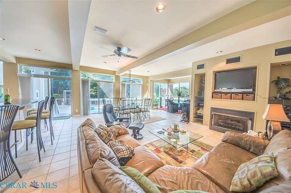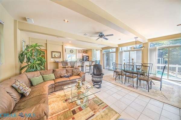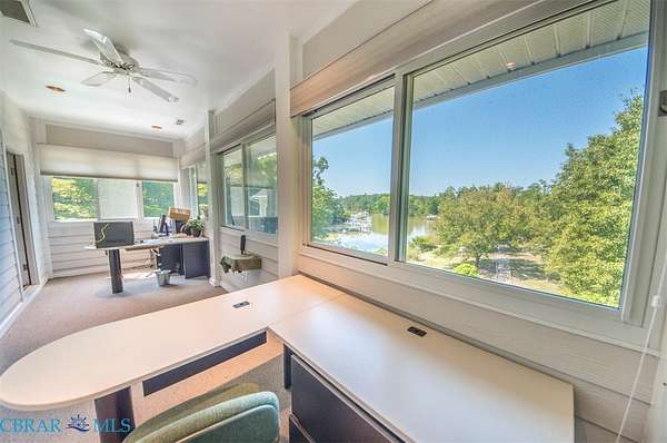 Ideal for entertaining or just relaxing. Fabulous Contemporary with walls of glass overlooking the creek and in-ground pool. Three private bedrooms and three and one-half baths. Great open spaces and high ceilings. Kitchen, Dining area and living areas which open up to a wrap around deck and tall glass walls overlooking the Gunite pool and lovely creek views. Two car attached finished garage and a Two car detached oversized garage with a Two bedroom, one bath, living area, kitchen and open deck upstairs. Pier with boatlift and jet ski lift. 3.5' MLW. Fenced dog run outside and in part of garage. Lovely landscaped grounds and paved drive. Property is being sold with all furnishings (except a few personal items) Great neighborhood just minutes from Urbanna. Urbanna is home to several restaurants and shops, wine and oyster strolls, farmers markets, Second Saturday events at the park and the famous Urbanna Oyster Festival.