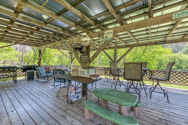 Welcome to your own slice of heaven on earth! This unique riverfront property is packed with potential and offers the perfect blend of relaxation, recreation, and opportunity. Whether you're searching for a private getaway, a weekend retreat, or an income-producing investment, this one-of-a-kind property delivers. Situated on 2.65 acres along the river, the property features over 1,200 Ft. of riverbank.. There are two charming tiny homes--one with two queen beds, and the other offering a queen bed along with a bathhouse. Step outside and enjoy the impressive 20x30 open-air living space, complete with a kitchen sink, refrigerator, and Blackstone grill--perfect for entertaining family and friends. The outdoor amenities make this property truly special, from a swing set for the kids or to a cozy campfire area for relaxing evenings under the stars. Additional features include two camper hookups and a spacious 26x18 open shed, adding even more flexibility and functionality. With its scenic setting and versatile layout, this property would make an incredible wedding venue, vacation rental, Fishing spot or Airbnb opportunity. All information is deemed reliable but not guaranteed. Buyer and buyer's agent to verify all information Don't miss your chance to own this incredible Private retreat--schedule your showing today! Please do not enter the property without a licensed agent. 17 Miles to Kingsport.