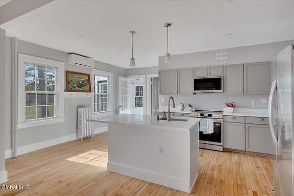 FOR INVESTORS: Legal 2-family property offering dual rental income opportunities. Strong demand for short-term and long-term rentals with close proximity to skiing, golf, hiking, and farm-to-table dining. Features include ample storage, a full walk-up attic, brand-new stainless steel appliances, and laundry hookups. Just 2+ hours from NYC, this home is well positioned for a weekend rental audience and makes a solid addition to any investment portfolio. FOR ENTREPRENEURS: Outbuildings provide excellent potential for an artist studio, yoga space, workshop, or other creative use. The legal 2-family configuration offers flexibility for live/work needs. Conveniently located near Albany, Hudson, Windham, and Saugerties-ideal for attracting clients or visitors. Scenic mountain views and access to outdoor recreation further enhance short-term rental appeal. FOR HOMEBUYERS: Two fully equipped living units offer versatile options for those seeking separate living spaces or adaptable layouts. Spacious bedrooms, a primary suite, and enclosed sunrooms provide comfort and privacy. The expansive living room features a wood-burning fireplace that adds warmth and character, while central air and mini-splits ensure year-round comfort. Located in the Greenville School District, which offers the International Baccalaureate Program.