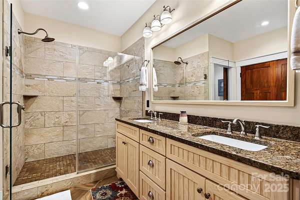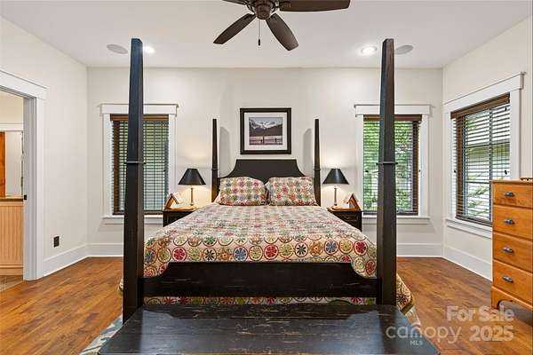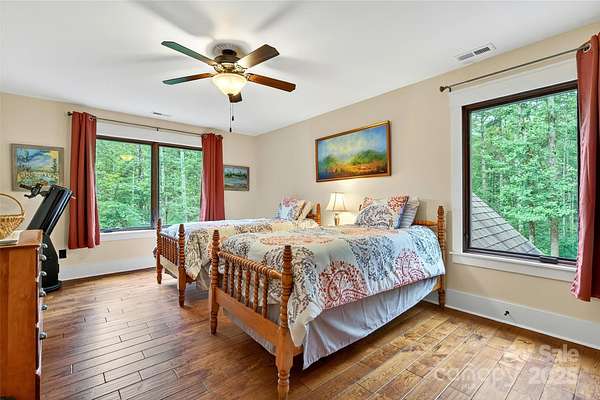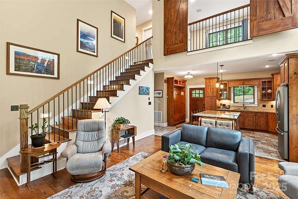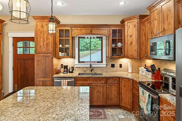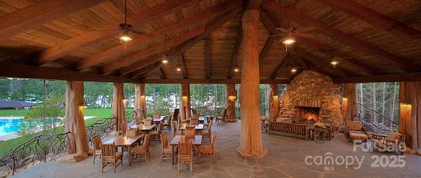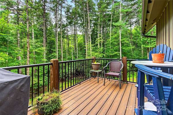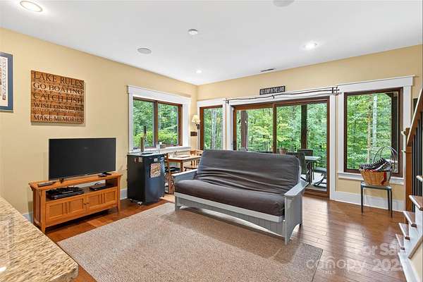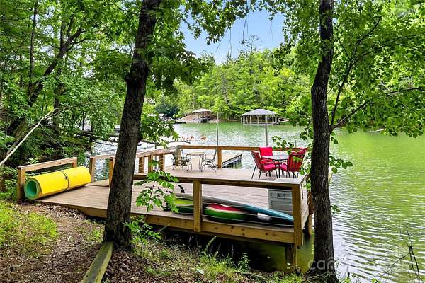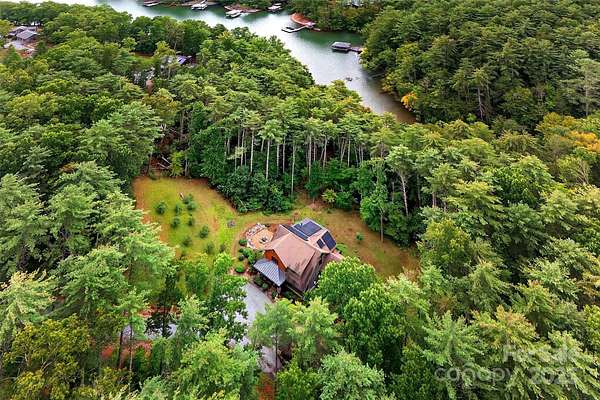 Lake James living at its finest! This custom-built 2015 Moss Creek home is set in a peaceful, wake-free cove with a RARE level walk to the water-no steep stairs required! Featuring 4 BD & 3.5 BA, the home also includes a fully finished basement with bonus room, wet bar and living area that opens directly to a covered lakeside patio. The craftsmanship shines with custom cabinetry, granite, detailed trim, and a built-in Murphy bed that transitions easily between guest space/office. Outdoors, enjoy evenings around the stone-lined fire pit or pick fresh blueberries from the heirloom bushes. A detached garage ready for EV charging station and solar panels provide modern convenience & energy efficiency. This property offers rare flexibility w/two separate building envelopes, ideal for adding a guest house or MIL suite. As part of the prestigious Camp Lake James, owners also enjoy resort-style amenities: a clubhouse, pool, fitness center, walking trails, pickle ball, & ample social events.