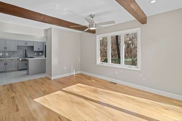 Welcome to "New Beginnings", The Ultimate Turnkey Opportunity with Income Potential! Discover a completely renovated property on over 2 acres. Every major system is BRAND NEW for ultimate peace of mind: New Harvey windows, new asphalt roof, new gutters, new siding, new septic tank/D-box, new high-efficiency Central Air/Propane Heat, new inground tank, and a whole-home propane generator. All heating, cooling, and on-demand hot water systems are brand new. Inside, enjoy all new hardwood flooring and tile. A new custom kitchen featuring brand new, top-of-the-line appliances and cabinetry. The main floor is ideal for entertaining, featuring a Living Room with striking vaulted ceilings and beams and a grand fireplace. The family room offers a wet bar and fireplace. Outside, an incredible wrap-around decking leads to your new expansive private yard and mature woodlands. The main house features five spacious bedrooms, each with oversized walk-in closets, three full baths, and one half bath. The master includes a full bath and 3 closets. Adding tremendous value is the oversized 2 car garage with a fully renovated one-bedroom apartment above. This true separate living space features new wiring/subpanel, new kitchen, new bathroom, a new water heater, and a separate covered stairway entrance-ideal for in-laws, remote office, or substantial rental income opportunity. The almost finished lower level adds over 500SF of conditioned rec space. A rare Peace of Mind Opportunity