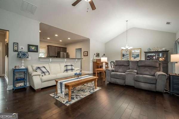 Better than new! Welcome home to this beautifully maintained 3-bedroom, 2.5-bath home in the desirable Hargrove Crossing community. Impeccably cared for and styled like a model home, this property offers modern comfort and a spacious layout designed for everyday living and entertaining. Step inside to find engineered hardwood flooring throughout the main living areas and an inviting open-concept living and dining room with a vaulted ceiling and stone veneer gas fireplace. The chef's kitchen features granite countertops, a tile backsplash, stainless steel appliances, a farmhouse sink and pantry. You'll appreciate the oversized laundry room with its handy utility sink which is perfect for everyday chores and extra storage. The owner's suite is a true retreat, offering a vaulted ceiling, two walk-in closets, tiled shower with bench and dual vanities. A split bedroom floor plan ensures privacy, with two additional spacious guest bedrooms and a well appointed guest bath. Upstairs, discover a versatile bonus room with a half bath-perfect for a home office, gym, or potential fourth bedroom. Enjoy the outdoors on the large screened porch, complete with a gas grill that conveys, overlooking the fenced backyard. Additional highlights include a two car garage, new water heater, and water softener/filtration system-all situated on a 1.53 acre lot just minutes from downtown Winterville. This home truly has it all-style, space, and exceptional care. Don't miss your chance to make it yours!