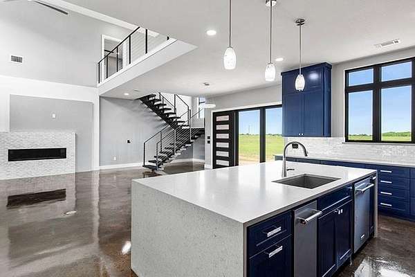Now available in three separate purchase options! Owner will separate! Purchase the house and 20.00 acres, or the house and 94.955 acres, or owner will separate approximately 75 acres from the house. This 3-bedroom, 3.5-bath, 3,554 sf modern masterpiece and 20 acres of land, with 75 additional acres available, present endless possibilities for buyers seeking a blend of sophistication and rural charm. Situated at the end of a quiet road with large neighbors, this property is one of the finest offerings in North Texas. The home features soaring ceilings in the kitchen and living area, oversized home office off the master suite with a striking stone fireplace, and striking concrete floors. The kitchen showcases a massive island with waterfall edges and room for casual dining, top-of-the line appliances, and tons of storage, while the dining area abuts expansive windows, bringing the outside in. The downstairs master features separate vanities and walk-in closets, and a massive corner shower. Custom floating stairs lead to an open loft and two spacious upstairs bedrooms, each with full bath and walk-in closet. The oversized 3-car garage includes a storage closet and washer-dryer connections. The massive back porch overlooks magnificent oaks and the pond below, which attracts deer and turkeys and serves as your gateway to the great outdoors. The back of the property borders Hagerman NWR, ensuring perpetual privacy. Located near major highways and the projected North Dallas Tollway, just over an hour from DFW Airport, 10 minutes from Whitesboro, and 20 minutes from Sherman, there is easy access to urban amenities while maintaining a peaceful retreat. This property is perfect for those who value luxury, privacy, and the great outdoors. Whether you seek a family estate, a working farm, a hunting retreat, a serene sanctuary, or all of the above in one package, this property delivers endless possibilities.