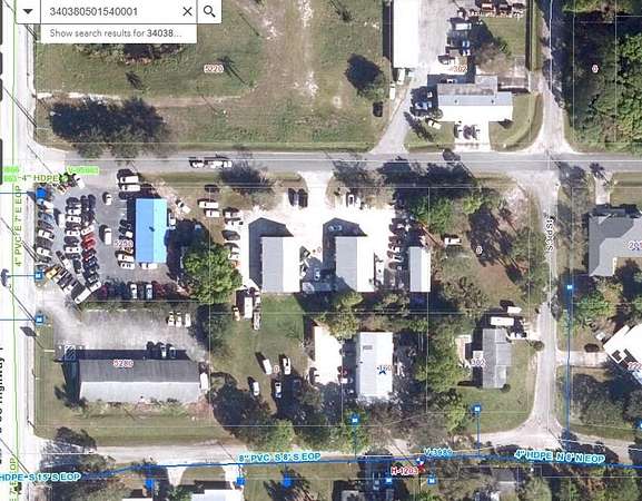Est $1,035/moAffordable General Commercial corner lot .35 Acre mostly cleared. (140 x 109). City water located on the opposite of the street (See utility map under documents tab). Located just of US Hwy 1 close to the dealerships, great location for a body or auto repair shop in desirable White City. Or great for your personal storage building for your boat and RV! (SW corner of Melton Dr and South 3rd St.). See documents tab of building site plan for 4,661 sq ft warehouse/office with 2,435 sf of warehouse and 2,2226 of office( can be modified to have more warehouse/less office).