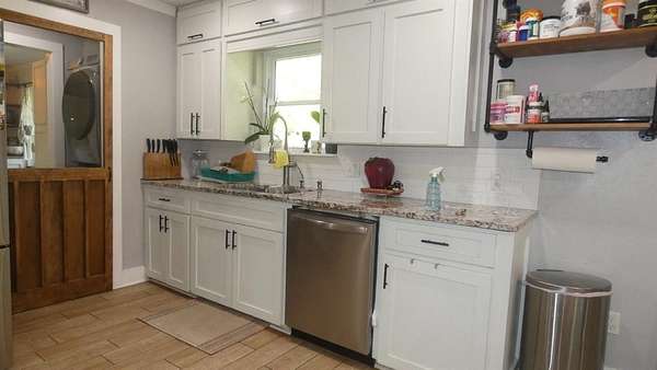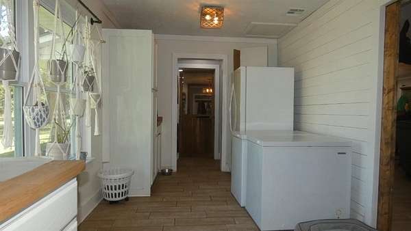 - Ceiling Fan, Dryer Connection, Granite Countertops, Kitchen Island, Pantry, Washer Connection, Window Covering