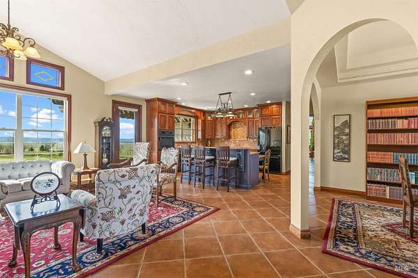 SINGLE STORY, Built in 2006, this exquisitely crafted Tuscan-style home offers timeless elegance and offers over 3400 sq ft of living space. Circular driveway, exceptional craftsmanship, featuring 3 bedrooms, 2.5 baths, dedicated office/den, expansive recreation and family rooms, spacious 3-car garage with integrated hobby/work area. Wide hallways and doorways with 2 luxurious roll-in tile showers elevate the spa-inspired baths. Rich, exotic wood trim accentuates windows, doors, custom paneling complementing the extensive tile flooring in the home. The gourmet kitchen showcases cherry cabinetry, granite countertops, and sweeping golf course vistas. Mudroom features a half bath, utility sink, and large closet. Outdoor amenities include a firepit area, garden shed/golf cart storage, and generous space for entertaining. Private well produces an impressive 60 GPM. Located on paved, lighted streets in an exceptional setting! Enjoy a 3/4 -mile walking/bike path with direct GOLF COURSE ACCESS!! Truly, one-of-a-kind!!