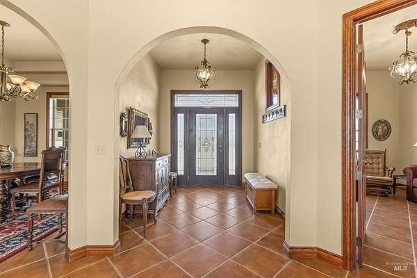 SINGLE STORY, Built in 2006, this exquisitely crafted Tuscan-style home offers timeless elegance and offers over 3400 sq ft of living space. Circular driveway, exceptional craftsmanship, featuring 3 bedrooms, 2.5 baths, dedicated office/den, expansive recreation and family rooms, spacious 3-car garage with integrated hobby/work area. Wide hallways and doorways with 2 luxurious roll-in tile showers elevate the spa-inspired baths. Rich, exotic wood trim accentuates windows, doors, custom paneling complementing the extensive tile flooring in the home. The gourmet kitchen showcases cherry cabinetry, granite countertops, and sweeping golf course vistas. Mudroom features a half bath, utility sink, and large closet. Outdoor amenities include a firepit area, garden shed/golf cart storage, and generous space for entertaining. Private well produces an impressive 60 GPM. Located on paved, lighted streets in an exceptional setting! Enjoy a 3/4-mile walking/bike path with direct GOLF COURSE ACCESS!! Truly, one-of-a-kind!!