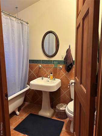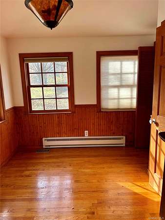 Unique Cornwall 1 BR cottage shares property with the owner's residence; partially furnished option; 3.7 acre property w/mature trees & shrubs. Wraparound porch overlooks Moodna Creek. Spacious living room w/ high ceiling; efficient galley kitchen; small BR, 1 bath. Lower level studio w/shelving, slab floor, sink/cabinets & laundry area w/walkout. Pellet stove and electric baseboard heat. Great views, hiking trails across the road, woods and creek in the back. Easy commuter access: 15 mins to West Point; 2 mi to Salisbury Mills train, 1 mile to Shortline Bus, 25 mins to Beacon train, close to NYS I-87 & Palisades Pkwy. 8 mins from Woodbury Commons. Heat, electric and internet not included. Landlord and tenant share snow and lawn maintenance. Rental application required, along with good credit (700+) and background check, references, proof of income & employment, in addition to personal interview. Do NOT drive on to property, confirmed appointments only. Parking for 1 car only. Non-smokers only. No Pets.