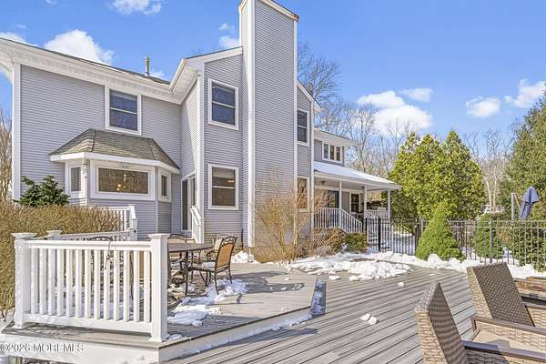 This is a Coming Soon Listing and cannot be shown until 2/28/26.... From the moment you arrive at this home in desirable North Howell, you will be captivated by the private, serene setting on almost 2 picturesque acres. The front porch is perfect for coffee in the morning or unwinding after a long day. Inside, the home offers generous living space designed for both comfort and style. The renovated kitchen, featuring stainless steel appliances, a double wall oven with an air fryer, and quartz countertops is the heart of the home with plenty of room to gather. Just off the main living area, a cozy library with window seat provides the perfect space to curl up with a good book or gather with friends. You will also find 1 bedroom and a half bath ideal for guests or an office space. A door leads to a second porch and fenced area perfect for pets to wander or for a garden to bloom. Upstairs, you will find 4 LARGE bedrooms, and 2 full baths. The primary bedroom has a spacious walk-in closet and huge bathroom with a tub and stall shower. The finished basement adds even more versatile living space, ideal for a recreation room, gym, or media area. The 2 door garage is a tandem garage which allows for a 3rd vehicle to park inside. In addition to ample parking, the garage includes a dedicated workstation area, lots of storage space, and a 220 volt electrical outlet for EVs. The backyard is an entertainer's dream! This private backyard oasis is a standout feature of this home with a multi-tier Trex deck, an in-ground pool & hot tub designed for summer parties in mind. (Hot tub, bar, pergola, & Traegar grill included in sale.) You won't want to miss this house!