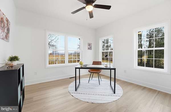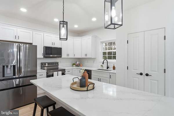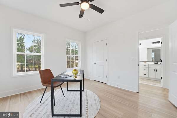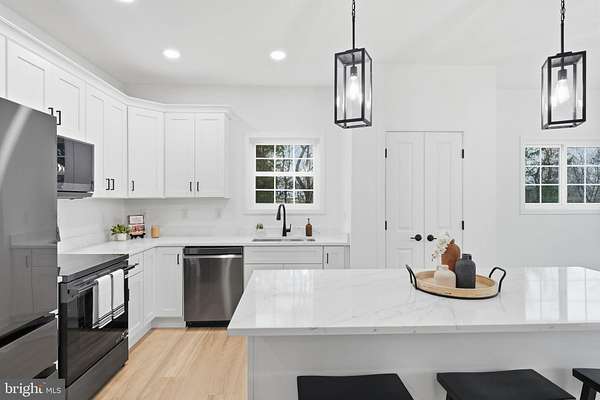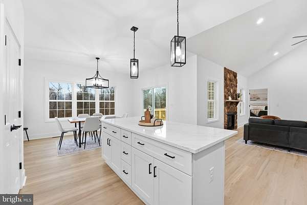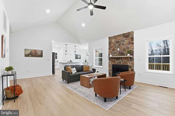 This spacious modern rambler is nestled on a 2.41 acre lot, just 10 minutes from popular Davis Street in Downtown Culpeper. The interior boasts luxury vinyl plank flooring throughout the main level common areas and bedrooms, beautiful tile in both bathrooms, a stunning floor to ceiling stone fireplace surround, sleek white cabinetry, black stainless steel kitchen appliances, quartz countertops, modern light fixtures, and ceiling fans in the bedrooms and the living area. The sliding glass door off the kitchen dining area leads to a large rear deck, which is the perfect spot for grilling, or just relaxing with wooded backyard views. The massive unfinished basement includes rough-in plumbing for a possible future 3rd bathroom. There is a concrete pad at the basement walk-out as well. Behind the lot is a gravel road (Muddy Run Ln) that allows for a second driveway at the back of the property, if one was interested. No covenants, conditions, or restrictions!