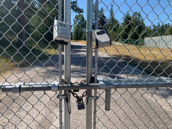 South end of Baker Avenue before left turn to Highway 93. Driveway/chainlink gate on right/west side of Baker.