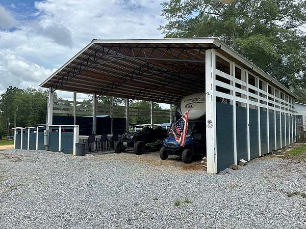 Est $405/moWhite Oak Shores 40 X 60 pole barn partially enclosed with gravel floor. Property has outside kitchen area to include large bar and sink; pole barn is constructed with 8X8 post and has 200- amp service pole in place. Property has fenced area for additional storage for your toys or can be used as patio for entertaining. Property also has designated parking for your vehicles and /or guest. Call your local Realtor/Agent today