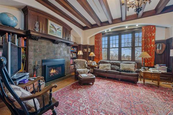 - All Window Treatments, Beamed Ceilings, Cable Available, Ceiling Fan(s), Fireplace, Tile Floor, Walk-Up Attic, Wall-to-Wall Carpet, Washer/Dryer Connection, Wood Floor