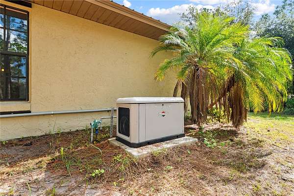 This well-maintained home features an open floor plan, split bedrooms, and a 32x10 covered, screened lanai ideal for entertaining. Skylights fill the home with natural light. Major system upgrades include a metal roof (2012), A/C (2017), Rheem Performance Tankless Water Heater (2023), Rheem WiFi-Enabled Smart Water Softener (2023), Briggs & Stratton 20KW Whole-Home Generator (2022) with a 500-gallon propane tank, and LG range, refrigerator, washer, and dryer (2021). Additional highlights include Lexan hurricane shutters and irrigation to maintain the lush landscaping.