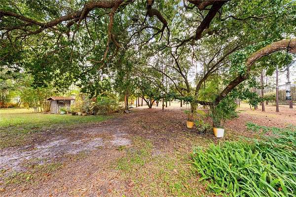BAY LAKE RANCH HOME ON 2.27 ACRE LOT at the END OF CUL-DE-SAC. Nestled under a canopy of lush landscaping and mature oak trees, this custom 4-bedroom, 2-bath home sits on a 2.27-acre lot with NO HOA in the highly sought-after Bay Lake Ranch community. Located in a cul-de-sac and bordered by the 1,100-acre Lake Lizzie Conservation Area, the property offers exceptional privacy and natural beauty.