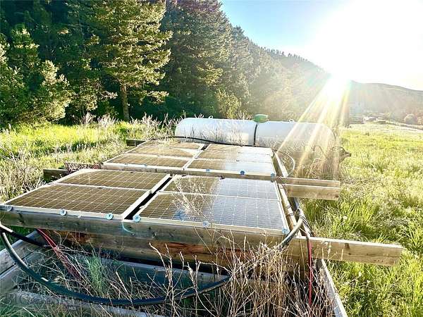REMARKABLE NEW PRICE - 60 ACRES near Bozeman, Montana. Fun OFF-GRID CABIN for recreation or live here and build your Montana dream home. Set up with complete solar system and water rights for a developed spring. Cute pre-fab cabin furnished with indoor and outdoor furniture, appliances, and a wood stove heater. Off-grid system with water holding tank, solar arrays and batteries convey (propane tank is leased). The cabin is already prepped for a composting toilet. There is a nice covered porch to enjoy the views and an existing RV pad. Fun old forest road runs up the hill to the upper elevations of the lots. There is a DEVELOPED SPRING located on the neighbors lot with water rights and a recorded easement in place. The acreage is mostly wooded providing excellent wild life habit and privacy to hike and relax in nature. There are four separately deeded lots (two 10 acre tracts and two 20 acre tracts). Year round access with 4x4 as needed. The west side of the Clarkston community borders public land and the Missouri River, so outdoor recreation is nearby. Area attractions include Headwaters State Park & Buffalo Jump State Park and the Gallatin, Madison and Missouri Rivers offer fishing and floating fun. The local towns of Three Forks and Manhattan are ~25 miles and Bozeman is ~45 miles.
