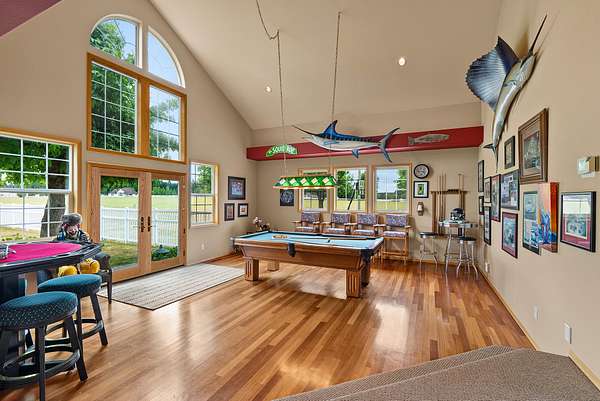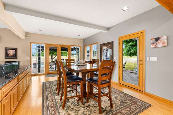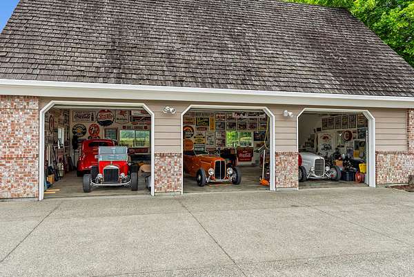 For added versatility, a detached three-car garage with a one-bedroom, one-bath apartment and a separate three-bay shop with a storage loft provide ample space for guests, multigenerational living, or rental income. Expansive patios, landscaped grounds, and open lawns create the perfect setting for gatherings, from family celebrations to larger retreats.