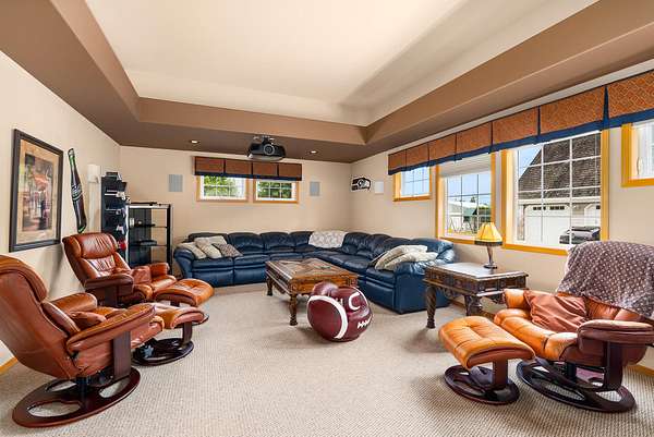 Upstairs, the home transitions into an entertainment hub with a private theater, a billiards and game room, and an additional bedroom suite. Every walk-in closet is outfitted with custom-built-ins, underscoring the craftsmanship and attention to detail found throughout.