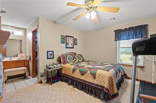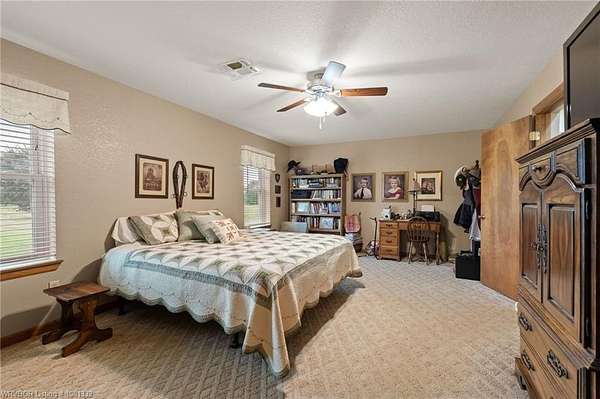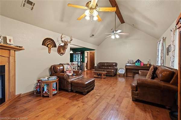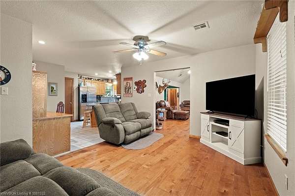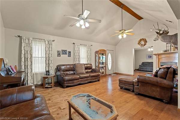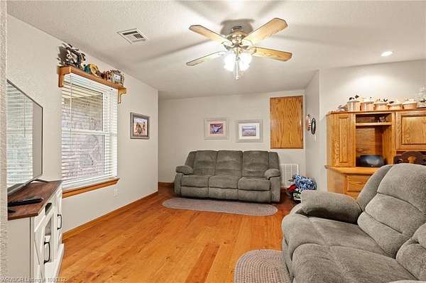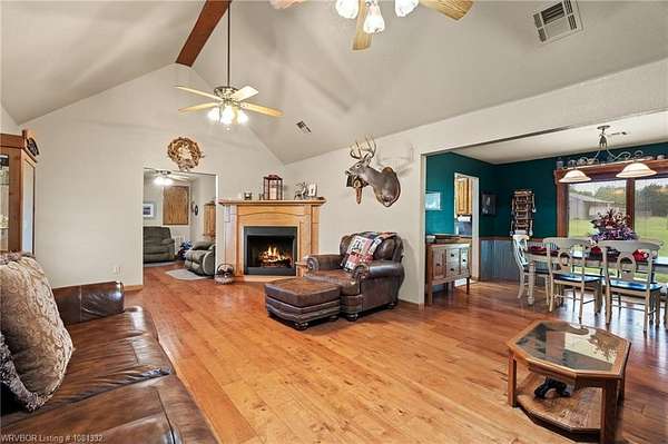Sitting on 21.72 (+/-) acres, this 3 bed, 2.5 bath hom gives you the best of country living with plenty of room inside and out. The house has a great layout with two living areas, vaulted ceilings, and lots of natural light. The kitchen's loaded with cabinet space, a big bar for extra seeting, and it flows right into the dining area - perfect for family diners or get-togethers. The master bedroom has double sinks, a soaking tub, and a walk in shower. The other two bedrooms are on the opposite end of the house, giving veryone a little privacy. There is also a half bath for guests and a big laundry room. The land is wide open with a mix of pasture and trees, and there's a pond tucked away in the back. You'll also find a barn perfect for livestock, storage, and projects. Would make a great place to run cows/horses, garden, or just enjoy the extra space that comes with 21.72 (+/-) acres.