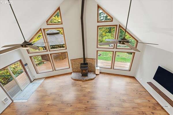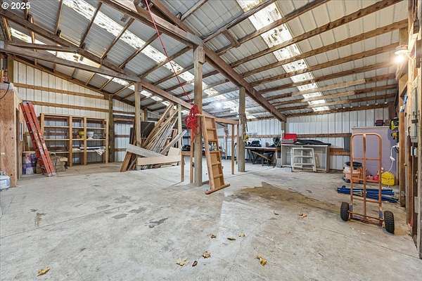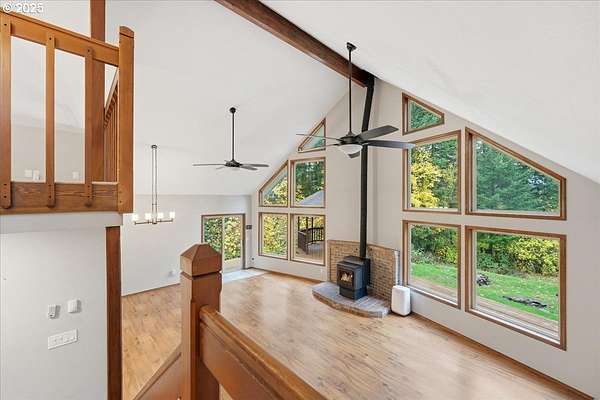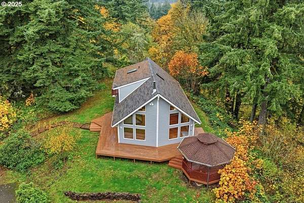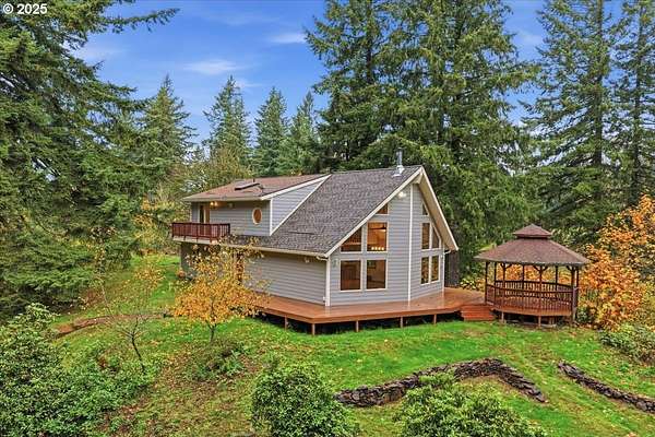 Welcome to your private retreat on 1.68 acres in beautiful Amboy WA! This inviting home greets you with a spacious wrap-around deck and tile entry, setting the tone for the warmth and comfort inside. The great room features vaulted ceilings, a striking wall of windows that fills the space with natural light, and a cozy brick-surround pellet stove. Laminate floors and ceiling fans complete this comfortable gathering area. The kitchen is a chef's dream, showcasing LG stainless steel appliances, granite countertops with a tile backsplash, abundant cabinetry (including a lazy Susan and built-in desk), recessed lighting, and tile flooring. The adjoining dining area offers slider access to the wrap-around deck & Gazebo. Perfect for indoor-outdoor entertaining. Upstairs, the spacious primary suite provides a true retreat with a vaulted ceiling, sitting area, walk-in closet, and private balcony. The en suite bath includes a skylight, tile floors, a shower, and a vanity. A cozy loft with skylight adds flexible living space, ideal for an office or reading nook. The two additional bedrooms are conveniently located on the main level, along with a full bath featuring a granite vanity and a tub/shower combo. This home comes complete with a NEW Whirlpool washer and dryer, plus built-in storage. Interior highlights include: vaulted ceilings, clerestory window, abundant natural light, and a blend of laminate, tile, and carpet flooring. Outside, you'll love: the peaceful, secluded 1.68-acre setting with mature trees, a gazebo, and fruit trees including Rainier and Bing cherries, plums, and apples. There's also RV parking and a 36x40 SHOP with 200-amp service-ideal for hobbies, extra storage or parking the cars. And best of all, the home features a BRAND NEW ROOF for added peace of mind. A perfect balance of privacy, comfort, and thoughtful design-this property offers an inviting indoor-outdoor lifestyle just minutes from town. Don't miss your chance to own a true one of kind.