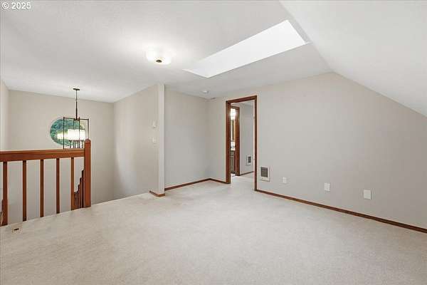 - Ceiling Fan, High Ceilings, Laundry, Luxury Vinyl Tile, Skylight, Soaking Tub, Tile Floor, Vaulted Ceiling, Wallto Wall Carpet, Washer Dryer