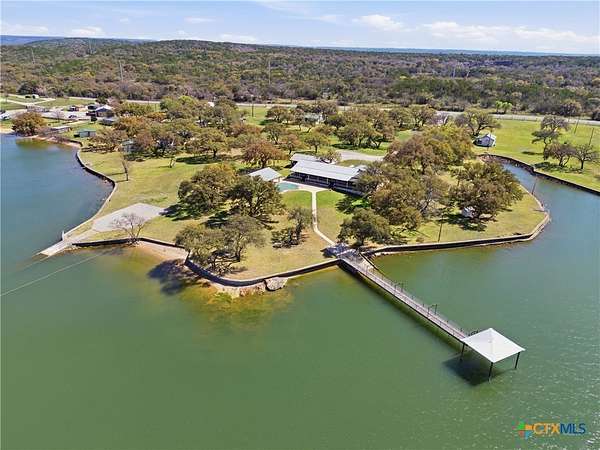 1,102' of Lake Buchanan waterfront. 6.5 acres. Opportunities like this are rare-expansive shoreline, deep water access, and room to create something truly special. Part of a rare 23-acre Lake Buchanan waterfront opportunity being offered in four individual parcels. Purchase one, combine multiple properties, or secure the entire lakefront compound. The waterfront is built for real lake life with a private boat ramp and fishing pier, while the shoreline transitions from 6-20' of water before opening into the full depths of Lake Buchanan. The property stretches across 6.5 gently rolling acres offering space to expand. At the center of it all sits an in-ground pool overlooking the lake, surrounded by large covered and open patios. What makes this property truly unique is its versatility. Multiple buildings across the land create a perfect setup for retreats, events, family compounds, or lakefront hosting. A conference building with kitchenette and projector-ready space is ideal for workshops and gatherings, while a second glass-lined building captures panoramic views beneath vaulted beams. The main house features lake views and a massive, covered porch overlooking the water. Additional guest buildings provide extra living quarters, kitchens, bathrooms, and lakeview decks. An outdoor bathhouse with multiple showers and restrooms makes cleanup easy after long lake days. Massive shoreline. Acreage. Endless possibilities. This isn't just a Lake Buchanan property-it's a destination.