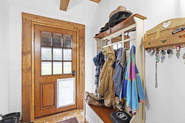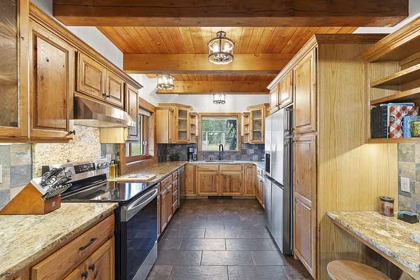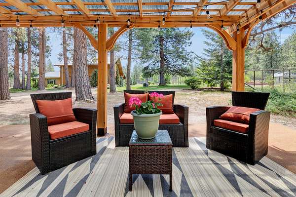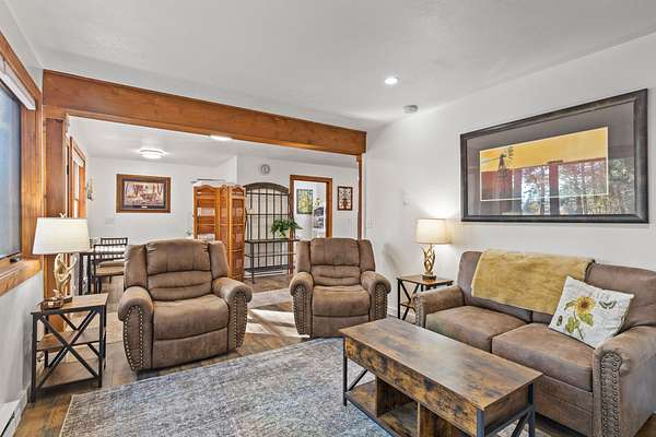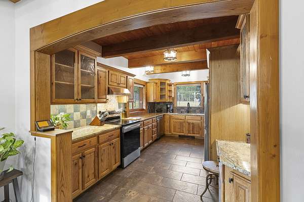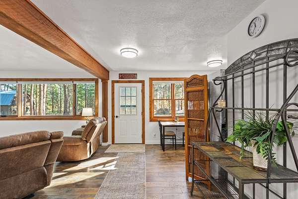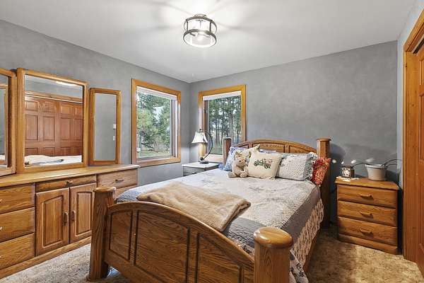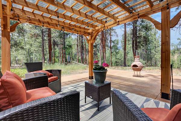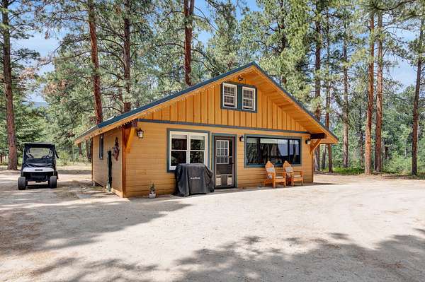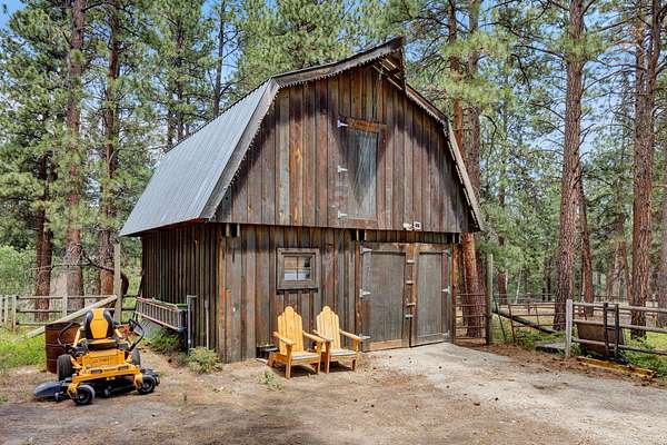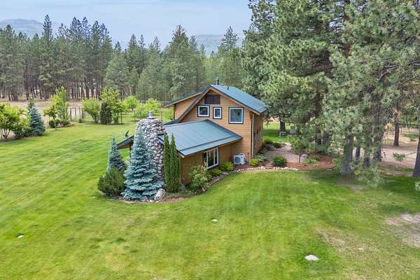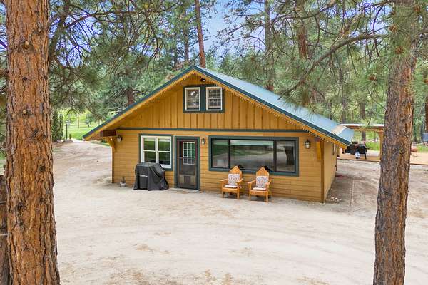 Welcome to your own Montana retreat--private, peaceful, and full of potential. This unique property includes a beautifully finished one-bedroom, one-bathroom guest house--ideal for rental income, extended stays, or a quiet home office. Nestled among the pines, it's move-in ready and thoughtfully designed. The main home blends rustic elegance with vaulted, open-beam ceilings, a cozy gas fireplace and wood stove, and a light-filled kitchen with stainless steel appliances. Large windows frame serene views of mature trees and wide-open skies, creating a warm and inviting feel. Outside, enjoy irrigated land with underground sprinklers, a classic barn, and tall trees that provide natural privacy. The outdoor living space features a pergola-covered patio--perfect for entertaining, relaxing, or cozy evenings by the fire. Whether you're seeking a short-term rental, multi-generational setup, or a peaceful place to call home, this property offers space, charm, and timeless Montana appeal. The separate guest quarters have an open concept bedroom and bath with beautiful tiled shower.