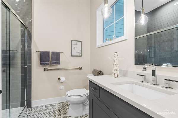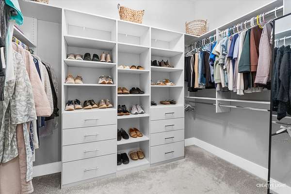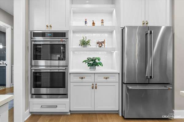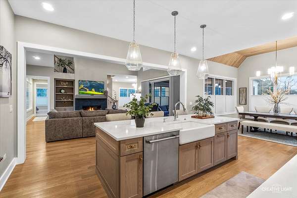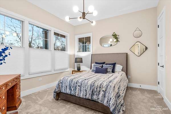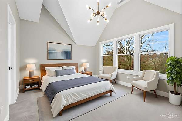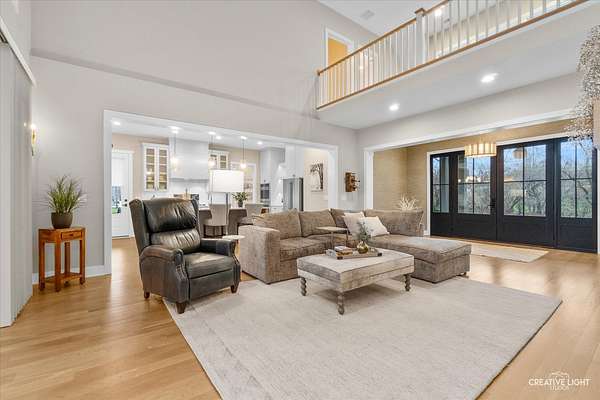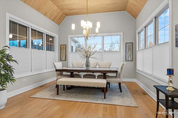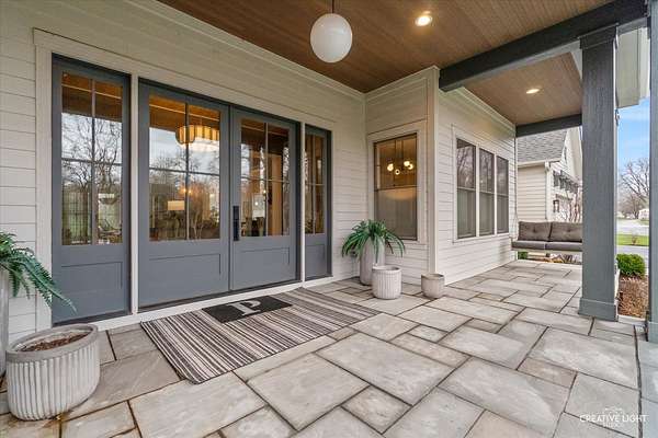 This exceptional custom home, built in 2022, offers a rare blend of refined design, elevated finishes, and an unbeatable location. From the moment you arrive and step onto the covered front porch, the craftsmanship and thoughtful detail are immediately apparent. The foyer opens to a breathtaking great room where soaring two-story ceilings, a statement fireplace, custom built-ins, plumbed for an elevator, and motorized blinds create a space that is both dramatic and inviting, all bathed in natural light. Rich hardwood flooring carries you into the heart of the home-a stunning chef's kitchen designed for both beauty and function. A striking quartz island anchors the space, complemented by custom cabinetry featuring specialized storage for every need, from utensils and spices to cookware and baking essentials. Elegant blue tile accents provide a sophisticated backdrop to the Cafe stainless steel appliances. The adjacent breakfast room is a showpiece of its own, surrounded by windows on three sides and highlighted by a beautifully detailed wood ceiling, while a spacious walk-in pantry ensures everything has its place. The main level primary suite is a true retreat, showcasing a designer ceiling with wood beams, a custom walk-in closet, and a spa-inspired bath complete with dual vanities, a tiled shower with seating, heated tile floors, and a private water closet with a smart toilet with bidet. This level also offers a second bedroom, a versatile den, a formal dining room, a full bath, and an exceptionally well-designed utility room with abundant storage for everyday living. The four-season room is not to be missed, featuring a wood ceiling and heated bluestone floors, creating a cozy yet sophisticated space to enjoy year-round. Upstairs, a spacious loft overlooks the great room and is flanked by two generously sized bedrooms. The thoughtfully designed full bath includes a beautifully tiled tub and shower area that can be separated by a pocket door, allowing for added convenience and privacy. The basement continues to impress, offering direct access to the garage, a completed full bath, and endless possibilities for additional living or entertaining space. The oversized three-car garage is equipped with an electric vehicle charging outlet, while the home's advanced mechanical systems-including dual zoned HVAC with humidifiers, two 200-amp panels, multiple water heaters including one dedicated to radiant heat, a passive radon system, and a whole-house generator-ensure comfort, efficiency, and peace of mind. Set on nearly two picturesque acres with a natural wetland and direct adjacency to the Prairie Path, the outdoor setting is as remarkable as the interior. A slate patio and covered back porch with gas grill, create the perfect backdrop for entertaining or relaxing in a serene environment. All of this is complemented by highly acclaimed District 200 schools, along with convenient access to shopping, dining, and nearby forest preserves, making this home a truly extraordinary offering.