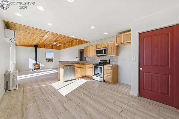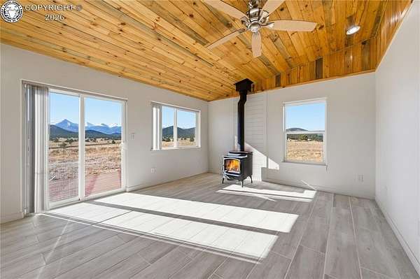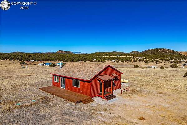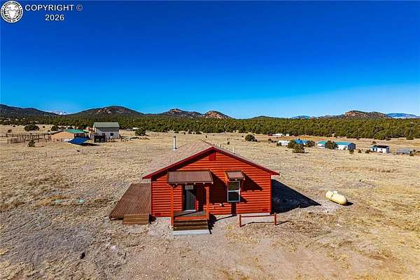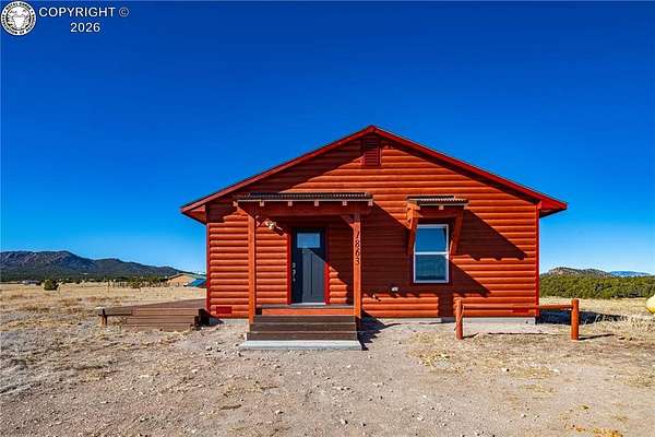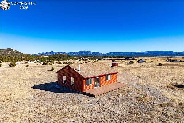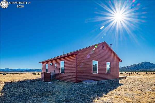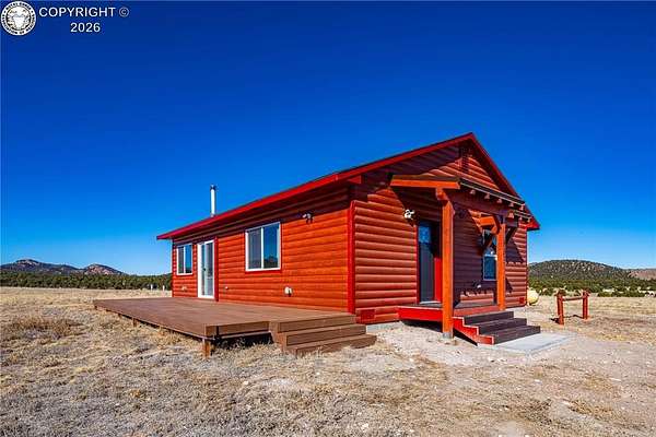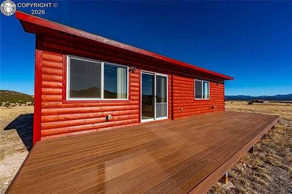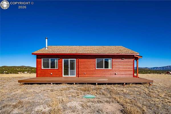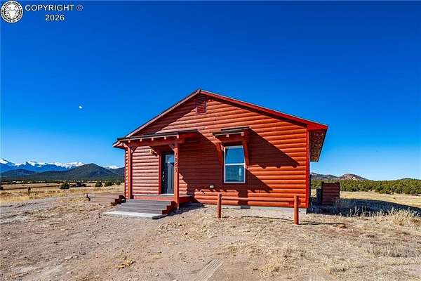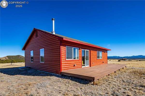 HUGE Sangre de Cristo range views. Set on 2.54 acres in the wide-open landscape of Florida-Colorado Acres, this 2018-built log-style home offers space, HUGE views, and flexibility with no HOA and no covenants. The 1,008 sq ft single-level layout features 2 bedrooms and 2 full baths, designed for easy living and low maintenance. The interior has been freshly painted, enhancing the bright, open feel created by vaulted ceilings and abundant natural light. Ceramic tile floors, a wood-burning stove, and a functional eat-in kitchen with tile countertops and modern appliances complete the main living space. Both bedrooms are generously sized, and the primary bath includes a double vanity and walk-in shower. Recent upgrades include new shower doors, new carpet, new blinds, new propane heating system and fresh exterior stain, adding comfort, efficiency, and long-term durability. Step outside onto the composite deck and take in 360-degree mountain views across the surrounding meadow. The level 2.54-acre parcel is ideal for horses, RV parking, or future outbuildings, with a household well, septic system, electricity, and propane already installed. Located in rural Cotopaxi, this property offers a quiet setting with easy access to outdoor recreation, dark skies, and Colorado's high-country lifestyle. Whether you're seeking a full-time residence, weekend retreat, or investment opportunity, this property delivers space, views, and freedom rarely found at this price point.