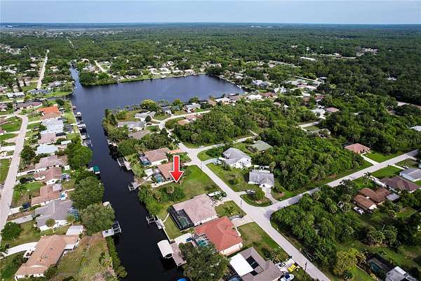 This completely CLEARED southern rear-exposure parcel on the Countryman Waterway (120' feet across behind this parcel) WITH A DOCK, has straight-forward one-bridge quick access (about 15 minutes) to Charlotte Harbor - from Marker 1 of Lewis Creek it's 12 miles south and 8 miles west-southwest to the Intracoastal Waterway at Boca Grande Pass... or just cruise 400' west and spend some time floating in Countryman Lake. Less than 10 minutes to the Town Center Mall (with Sam's, BJs, Walmart and lots of restaurants) and just over 10 minutes to the nearest Publix (on US 41 just north of Edgewater). July 2025 update - Average and median waterfront home listing prices (mostly smaller (<2,000 sq ft) and older) in these two areas (north and south of Lake Worth & Ackerman between Midway and Collingswood) ) are $500K+. Two of the last three sales closed at an average of $560K. Vacant land prices in this area (traffic noise? NONE!) with only 4 waterfront parcels (the other 3 need to be cleared and have NO DOCK) available at this time. Get your piece of waterfront paradise while some owners are still willing to sell!