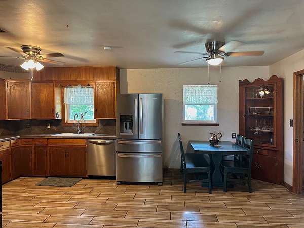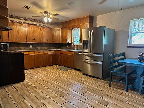 Move-in ready and full of charm, this beautiful 3-bedroom, 2-bath home sits on 5 peaceful acres just outside of Cheyenne, OK. With 1,685 square feet of comfortable living space, the home features a cozy new wood-burning stove, ceiling fans throughout, and plenty of natural light. Outside, you'll find multiple outbuildings including a garage, tack room, storage sheds, and a chicken coop--perfect for a hobby farm or extra space. A well-maintained storm shelter is conveniently set inside a powered outbuilding with additional storage. The backyard is a gardener's dream with raised garden beds, a fruit orchard, and a solar-powered well--fully enclosed with tall fencing to protect your harvest. Enjoy quiet country living with beautiful Oklahoma sunsets, just minutes from Cheyenne's hospital, grocery store, and small-town conveniences. This is the perfect blend of comfort, privacy, and rural charm.