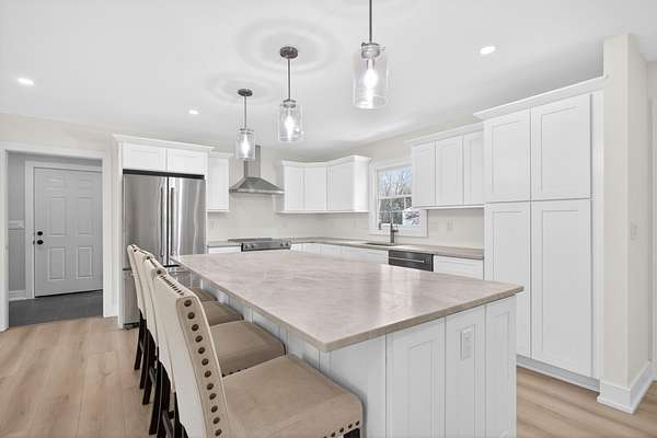 PRIVATE, FULLY RENOVATED RETREAT WHERE MODERN DESIGN MEETS PEACEFUL COUNTRY LIVING ON 20 SCENIC ACRES WITH POND & 2 MASSIVE BARNS. Beyond breathtaking & absolutely amazing, this secluded setting rests approximately 600 feet off the road to ensure your endless privacy remains. Completely remodeled down to the studs and rebuilt with exceptional attention to detail, this stunning 3 bedroom, 3.5 bath home offers the perfect blend of style, comfort and functionality. Every detail has been thoughtfully updated; including everything from ALL NEW electrical, 200AMP panel, plumbing, insulation, drywall, ductwork, floors, bathrooms, lighting, furnace, central air, hot water heater, well pump, drain field, kitchen, wet bar, interior/exterior doors, hardware to gutters, downspout, recessed soffit lighting & more! Plenty of worry-free ownership for years to come. The open concept floor plan creates a bright and inviting space, highlighted by high quality finishes and craftsmanship throughout. The living room overlooks the scenic pond and boasts walls of Western facing windows and a sliding door, inviting abundant natural light and breathtaking sunsets to pour in and settle beautifully across panoramic views. The spacious kitchen flows effortlessly into the main living area, anchored by an expansive island perfect for gathering and entertaining. Timeless white, soft-close dovetail cabinetry lines the walls, while elegant Taj Mahal countertops offer generous workspace. Stainless steel appliances complete the space and thoughtful upgrades like pre-wiring for both upper and lower cabinet lighting--add convenience and sophistication. A convenient main floor laundry room paired with a functional mudroom and half bath adds practicality and ease right off the attached garage trimmed out with drywall, insulation & recessed lighting. The stunning primary ensuite features trendy large format tile flooring and a spacious walk-in shower with striking fluted tile accent walls, beautifully paired with a sleek glass wall for a modern, spa-like feel. A large vanity with dual sinks and ample cabinets provides style and functionality. Luxury vinyl plank and tile flooring sprawl throughout the entire home. As you enter the finished walkout lower level, you'll notice custom accent lighting to lead the way. This space creates the perfect set up for family and friends to gather complete with a brand new wet bar, home theater space with built-in projector media shelf and beautiful full bathroom. Explore the outdoors with 20 acres of rolling and wooded picturesque landscapes, backing up to 100s of acres of privately owned land. This setting is ideal for nature lovers of all kinds, outdoor enthusiasts with excellent hunting opportunities right in your own backyard, making it a true sportsman's retreat. Enjoy not one, but two barns (1) 50x100 pole barn with 18', concrete floors & electric with a perfect space designed for a studio, home office, workshop & more (2) 34x58 metal sided barn with thick concrete floors and heavy metal framing. This is great for additional storage, equipped with an electric panel already in place ready to be connected. The possibilities for these barns and land are endless-create your own family compound, barndominium, pickle ball courts, generate revenue with storage leasing and more. This home is perfectly positioned less than 5 miles from several of the area's favorite lakes including Clark Lake, Farwell Lake, Lake Columbia, Lake LeAnn, tons of golf courses plus Liberty Township's new Fire Station around the corner! The Southern Jackson County location is minutes to Jackson Country Club, Jackson College, 20 miles to Hillsdale, 15 miles to Michigan International Speedway & 10 miles to Jackson. Come enjoy luxury country living at its best!